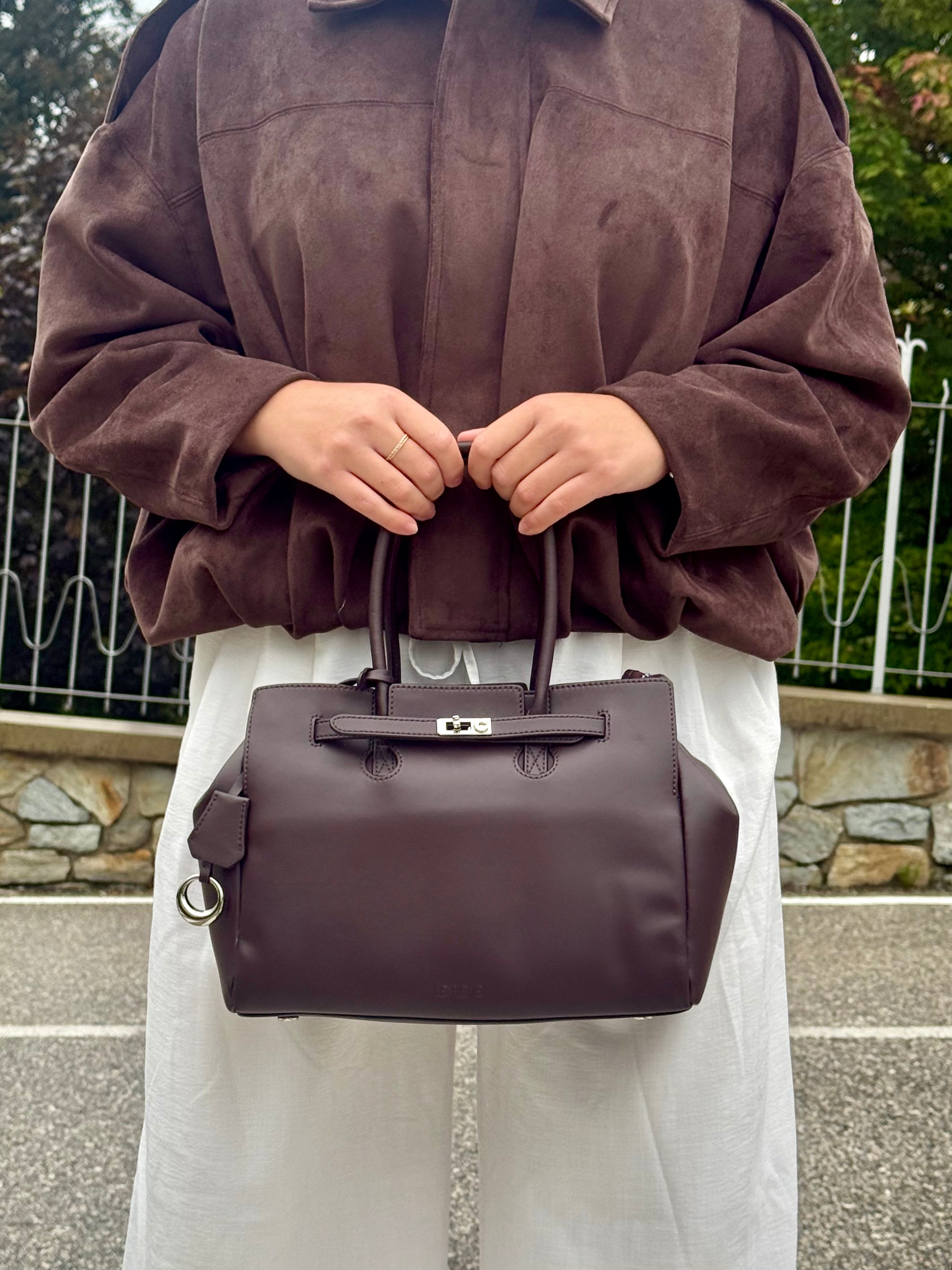 Borsa Amanda -Caffè con cuciture a contrasto